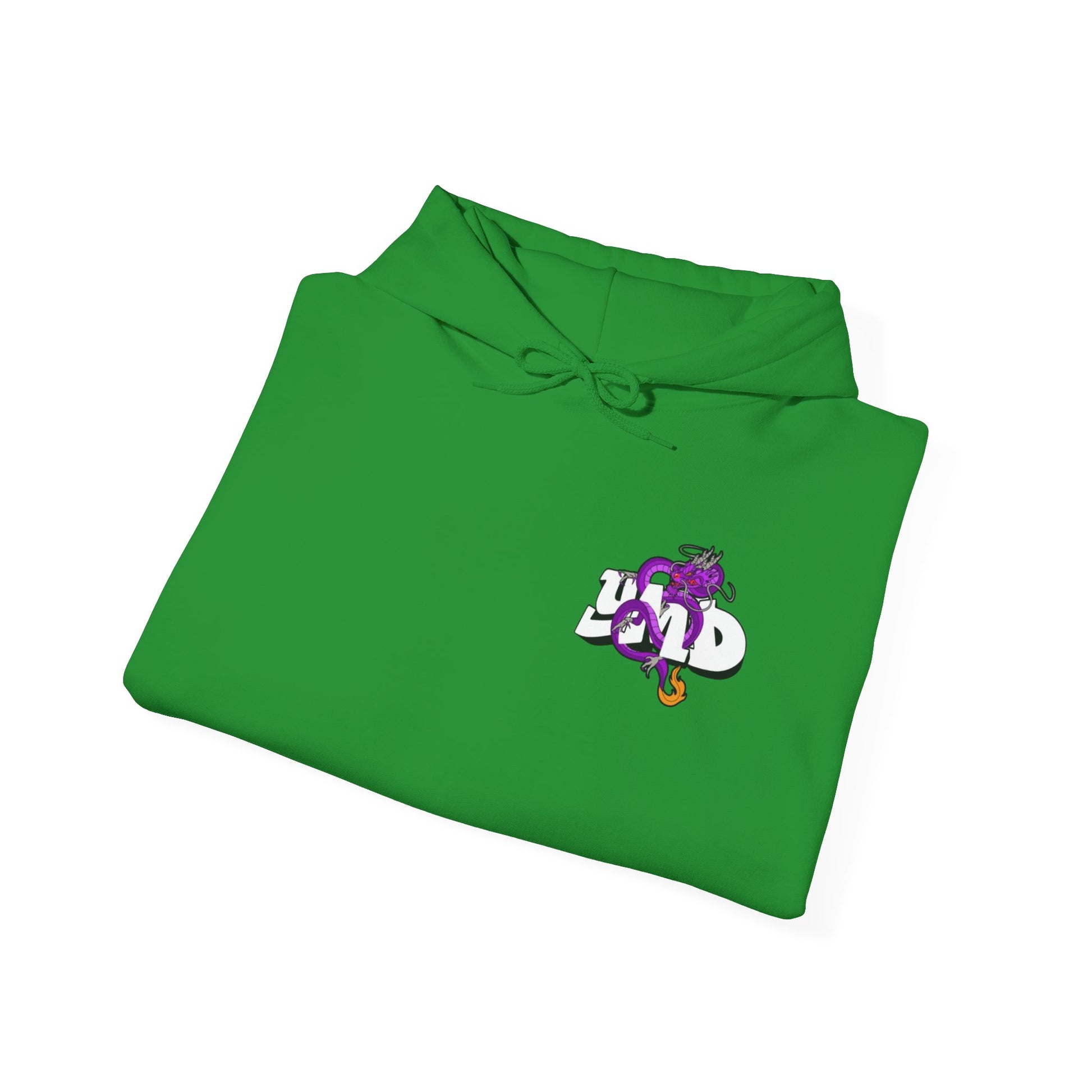 This unisex heavy blend hooded sweatshirt is relaxation itself. Made with a thick blend of cotton and polyester, it feels plush, soft and warm, a perfect choice for any cold day. In the front, the spacious kangaroo pocket adds daily practicality while the hood's drawstring is the same color as the base sweater for extra style points.
